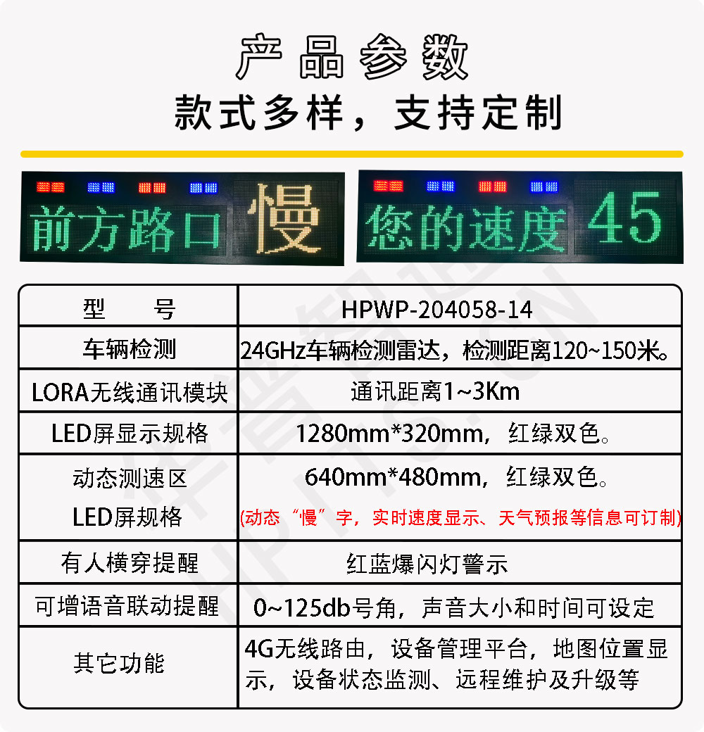 l动态测速区LED屏规格640mm*480mm,红绿双色。